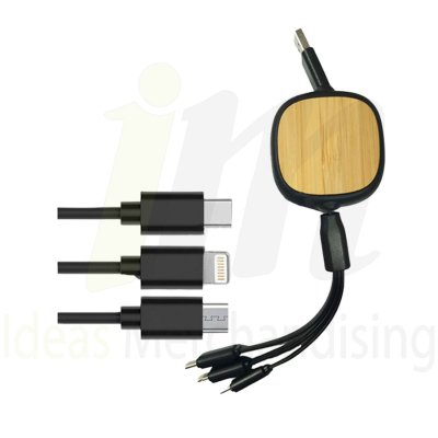 IM9051 Cable Eco Multipuerto retráctil color negro con logotipo impreso, entrega en Lima y Provincias como regalos corporativos para colaboradores de tu empresa. Cotiza por nuestra web.