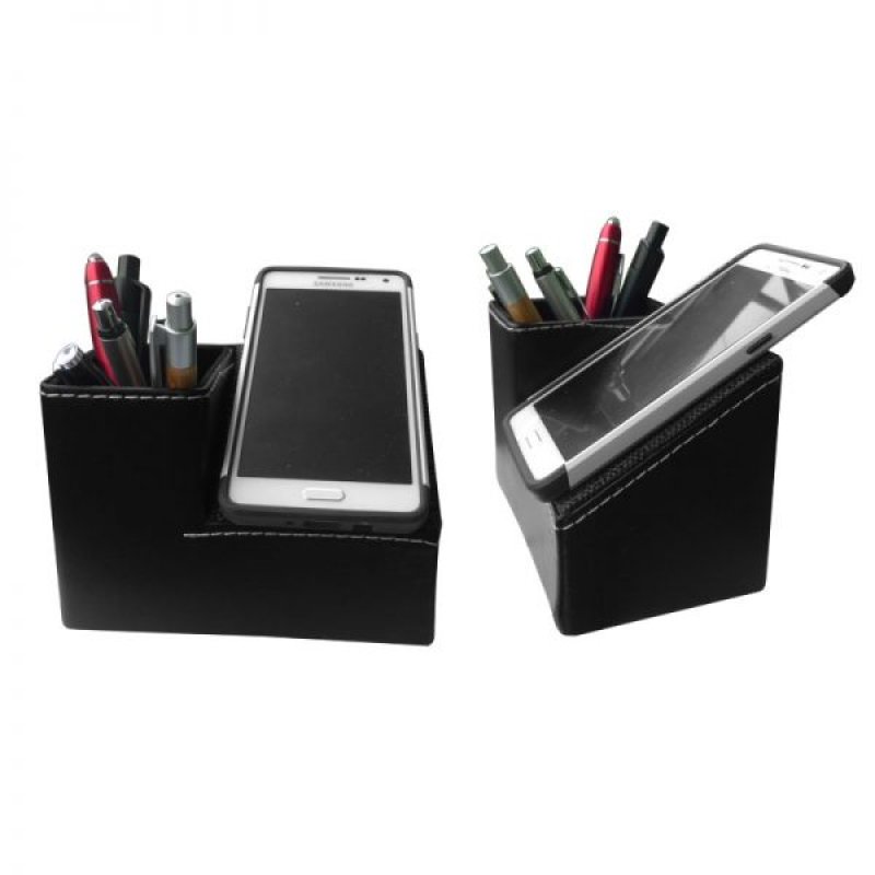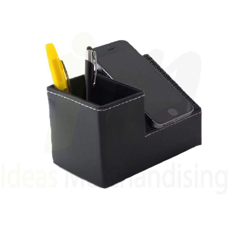 IM4271 venta de porta lapicero de escritorio forrado en cuerina, usalo con tu logo impreso o tu mensaje favorito.